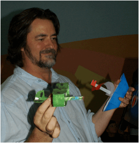 The children gave gifts too: a handmade airplane and a boat, for the Òworld traveler.Ó