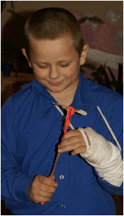 LÕyosha, 8, was as jolly as could be — in spite of a broken arm.